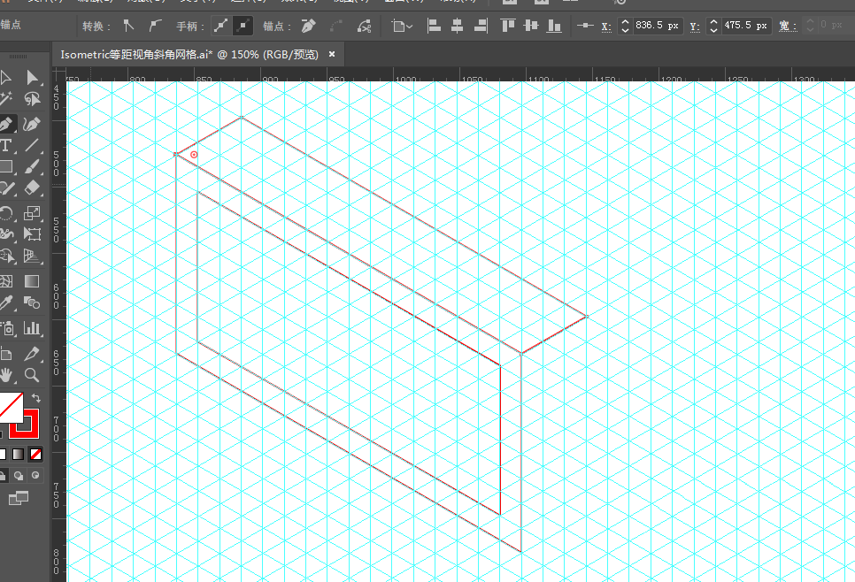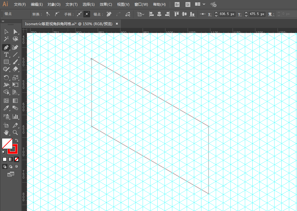 1、打开软件,准备好网格,用钢笔工具绘制一个倾斜长方形。