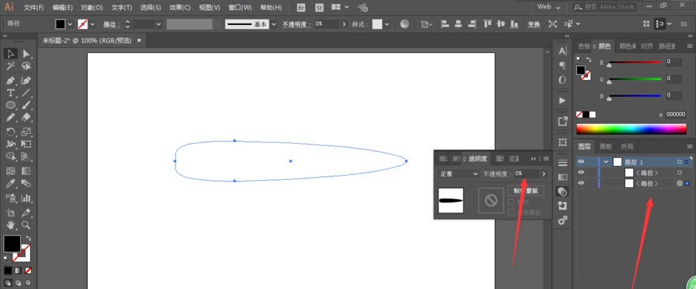 4、不透明度调整为0,然后进行混合处理。再进行对象扩展。