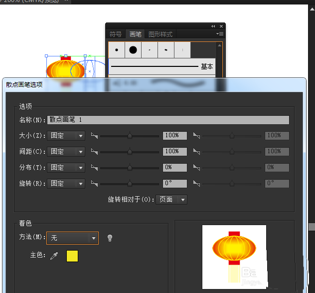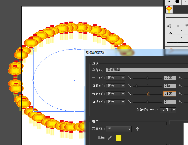 12、双击画笔面板中的灯笼,跳出散点画笔选项,可以自由调整其效果