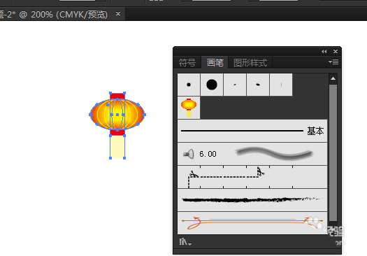 11、先画一椭圆,选中椭圆,点击画笔中的灯笼,就出现下图中的效果