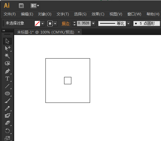 2、画一个小正方形(按住Shift画矩形,就成了正方形),再Ctrl+C+F原位复制正方形,按住Shift+Alt沿小正方形中心拉大正方形,如下图