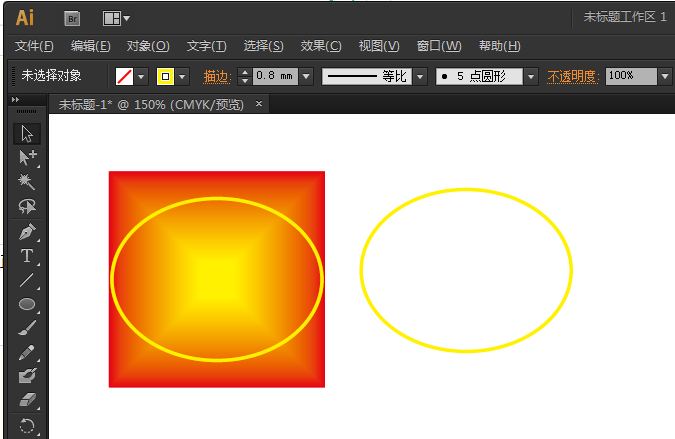 5、 画一个黄色边椭圆,对齐正方形中心,然后再复制一个在旁边