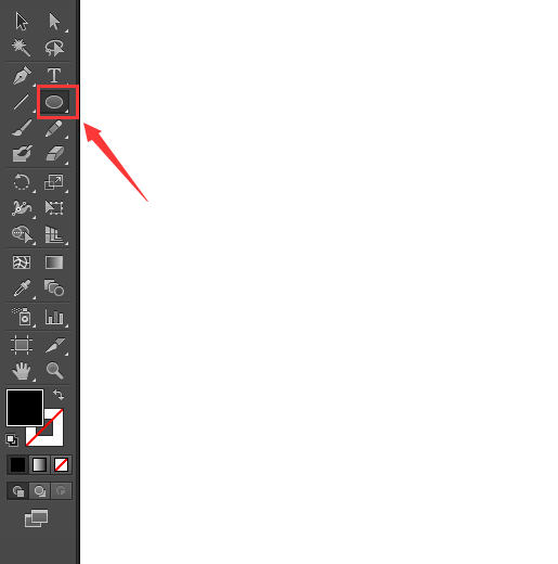 2、打开AI之后在工具箱内找到椭圆形工具,如图所示: