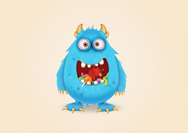 教你使用Illustrator创建可爱的卡通蓝色小怪物,教程制作的是一个长着大嘴巴的蓝色小怪物,效果非常可爱,作者讲解的非常详细,大致分为创建怪物的身体、眼睛、嘴巴、舌头、牙齿以及创建效果、装饰品等元素和细节,共17个大步骤,好了,话不多说,下面让我们先看一下效果图,然后跟着制作步骤一起开始创建吧!