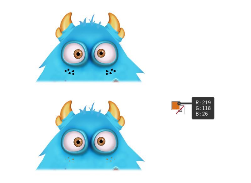 使用钢笔工具(P)或椭圆工具(L)在雀斑下绘制几个微小的形状。他们不一定非常圆。