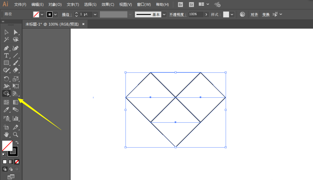 4、全选用形状生成工具工具去掉不要的部分。然后用钢笔工具绘制菱形。