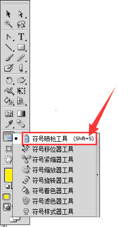 1、在窗口菜单中调出符号面板,在符号面板中选择任意一个符号,点击工具箱中的符号喷枪工具,在画面中喷射符号,单击是一个符号,长按可以喷射多个符号。