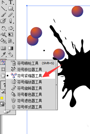 3、点击符号紧缩器工具,点击多个符号,可以对符号之间进行紧缩操作。