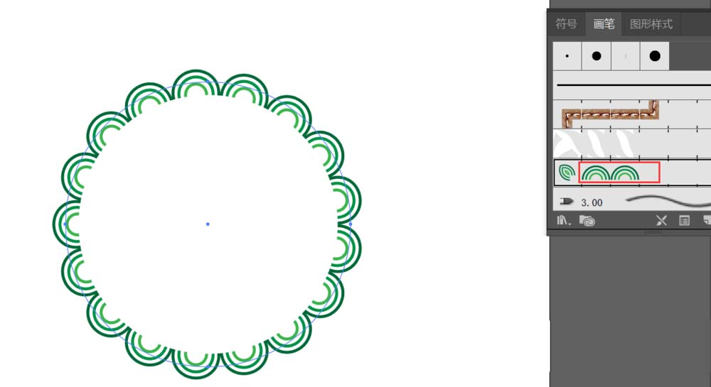 6、利用【椭圆工具】画出圆形,并点击添加的画笔,做出如下效果