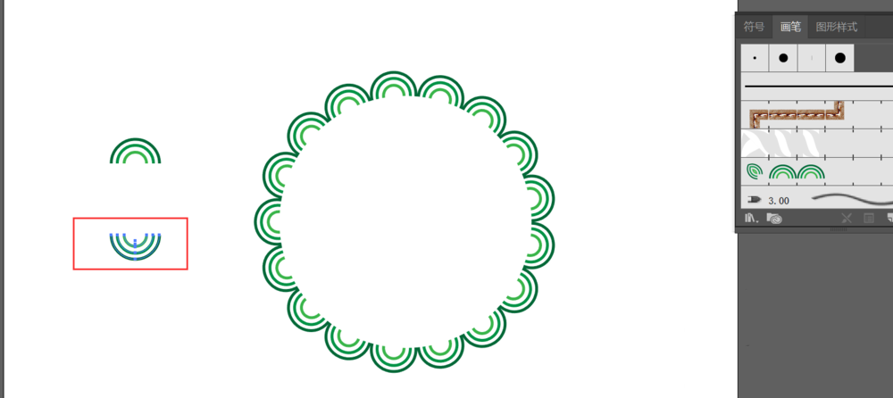 7、将刚才的半圆进行旋转,同理进行画笔编辑,做出如下效果
