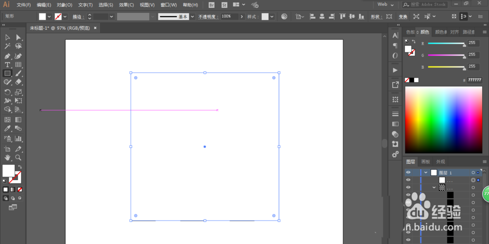 4、绘制一个正方形,并且添加背景。