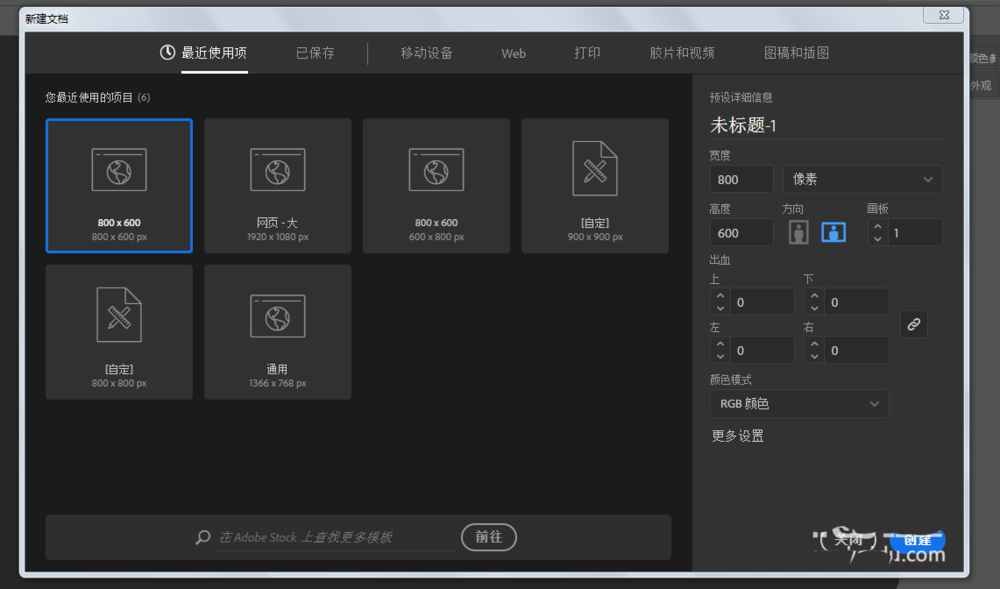 1、新建一个800*600大小的文件,颜色模式RGB。