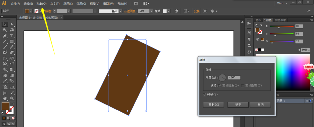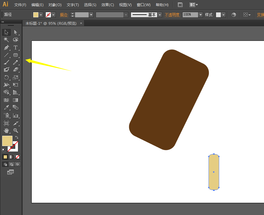 2、对象-旋转,对长方形进行旋转。再进入效果-圆角,是长方形四个角变成圆角的状态。
