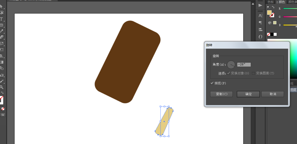 3、用圆角矩形工具绘制一个圆角矩形,对象-旋转,对其进行旋转。