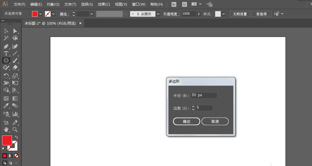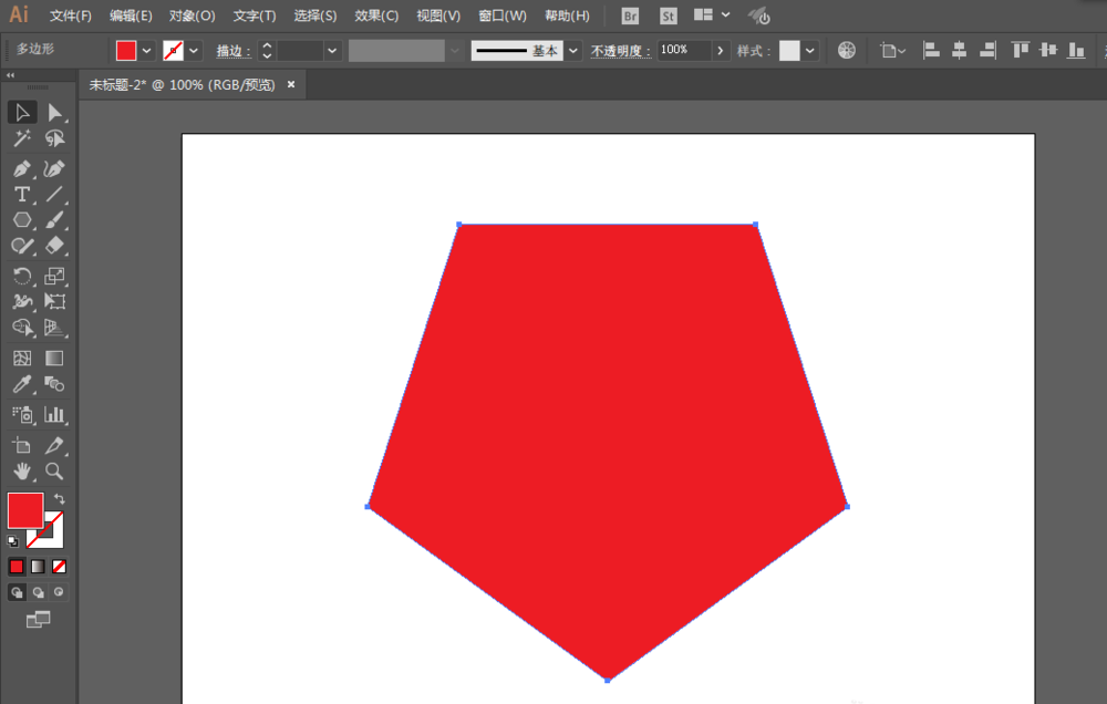 2、用多边形工具创建五角形工具,填充红色。