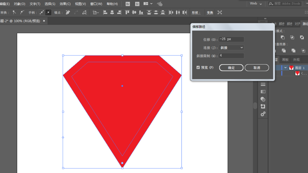 3、直接选择工具调整锚点位置,再进行偏移路径的处理,里面的调整为黄色。