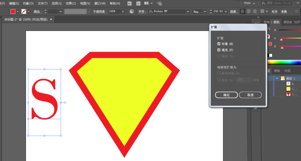 4、文字工具写出S字母,进行对象的扩展,用形状生成工具联合部分区域。