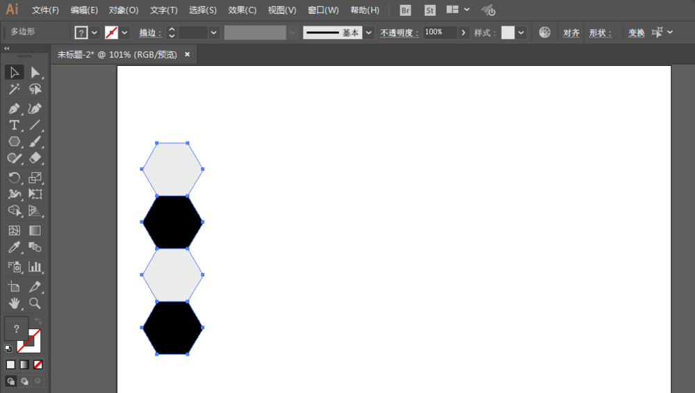 2、用多边形工具绘制一个六边形,填充为黑色。