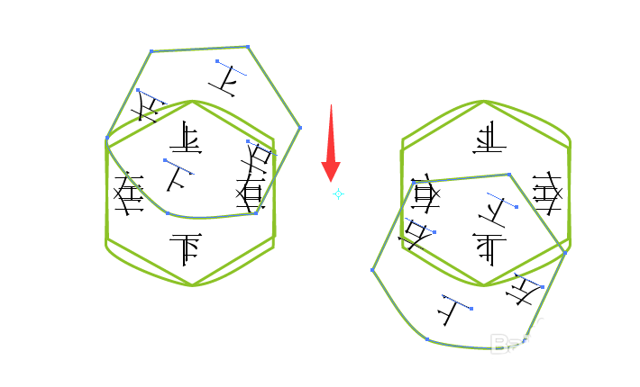 7、一起选中这两个图像,点击水平镜像变换,点击复制,可以看到效果是以新的中心点的线水平镜像的复制了我们选中的两个图像。