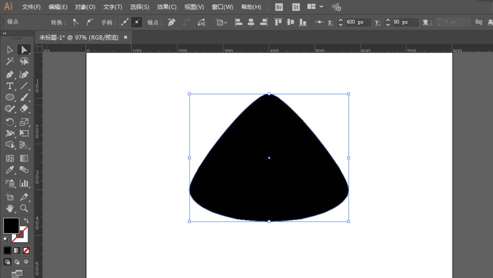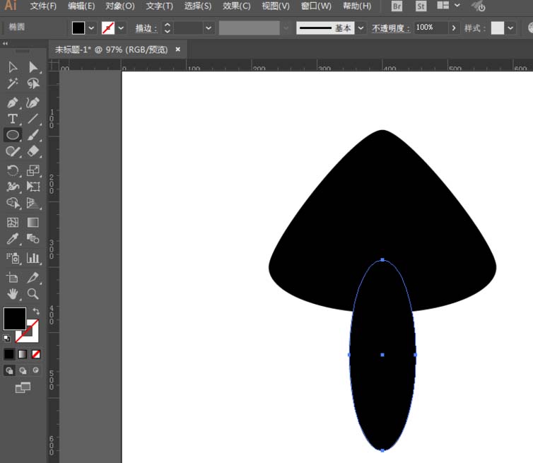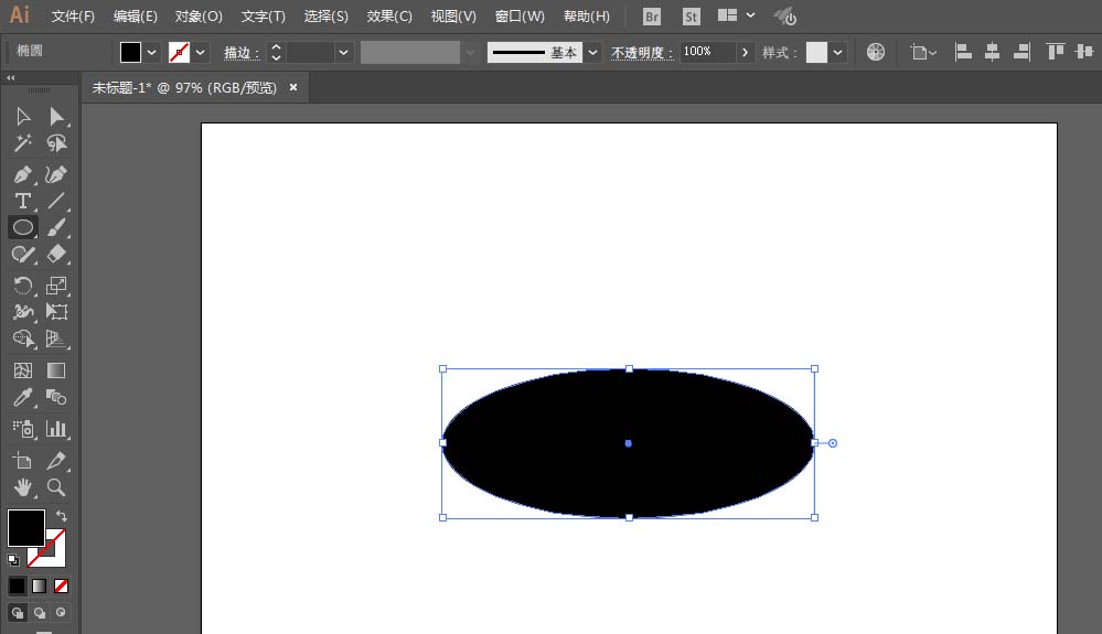 2、用椭圆工具绘制一个椭圆,填充任意颜色,用直接选择工具调整锚点位置。