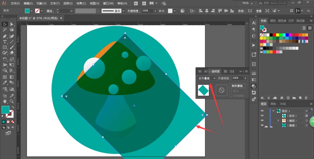 6、新增一个圆形作为背景,创建一个矩形,进行正片叠底,增加一些锚点,调整锚点位置。