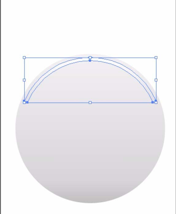 2、使用圆形工具,我们在大圆形的上边缘画出一个圆弧并填充为灰白色。这就是大圆形的亮区所在。