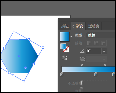 1、比如,现在图中的多边形设置了线性渐变,从浅到深的蓝色线性渐变