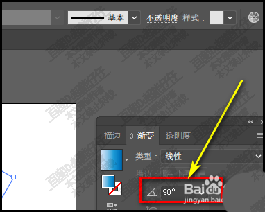 2、选中多边形;我们调出渐变的面板,我们在角度这里输入一个数值,比如,90