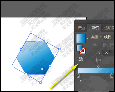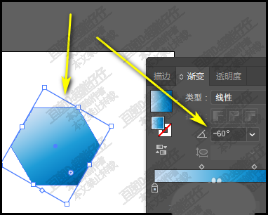 4、比如,输入-60度;我们再看画板的多边形,看,渐变的方向又改变了