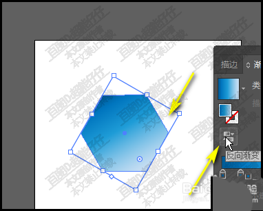 6、比如,步骤4中设置了-60度的这种方向的渐变,那么,如果我们点击:反向渐变,看,多边形渐变方向发生了变化