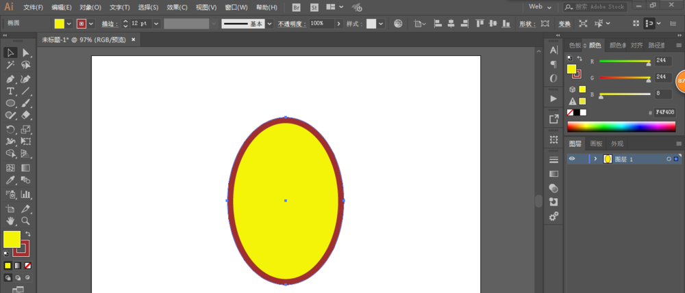 2、用椭圆工具绘制 一个椭圆形,填充颜色,描边也需要颜色。