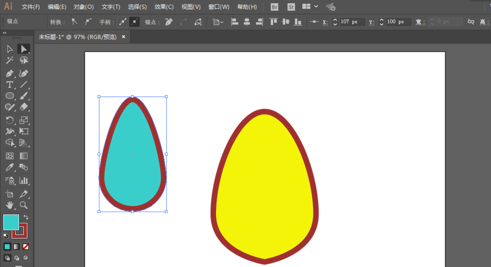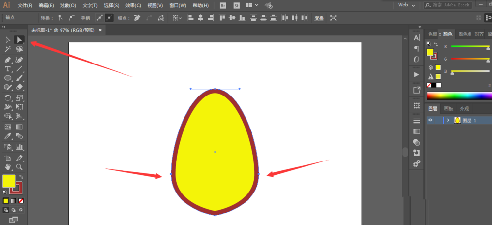 3、用直接选择工具修改一下锚点的转折点,调整两边的锚点。