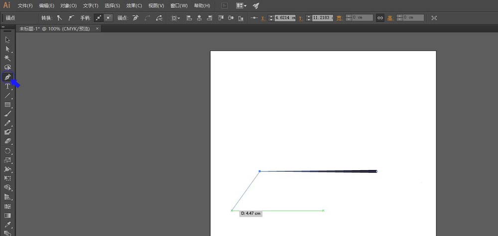 2、其实只要一个简单的步骤就可以哦。选中路径,点选【钢笔工具】,在路径的另一端单击一下,此时路径变为编辑状态,而线段两端的方向也改变过来了。然后,再按键盘上的Esc键就可以结束路径的编辑状态。