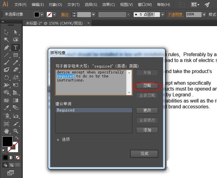 5、如果你发现这个单词实际没有问题,那么点击忽略即可。
