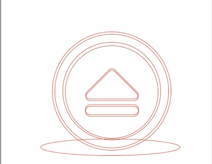 1、先画出两个同心圆形,再用钢笔工具画出一个向上的箭头,最后,画出一个圆形的阴影路径。