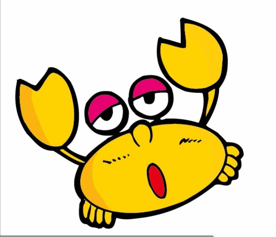 5、设置前景色为黄色,我们填充螃蟹的钳子与面部,在钳子上面分为亮区与暗区,暗区的黄色要设置得深一些。