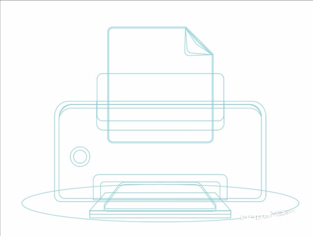3、这一步完成打印机的阴影区域的路径绘制,打印机的出纸盒路径的进一步完善。