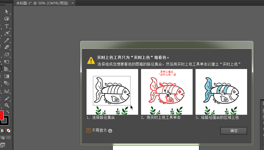 4、如何单击上色有这种提示,说明你还没有选择上色素材的路径,上色需要图稿路径集合