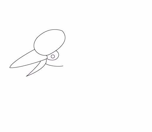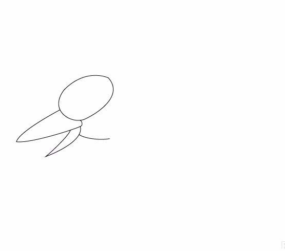 4、在头部上画出翠鸟的嘴巴,如图所示: