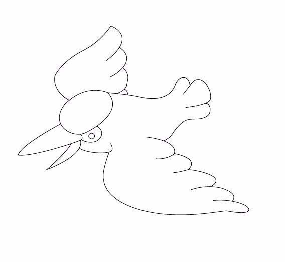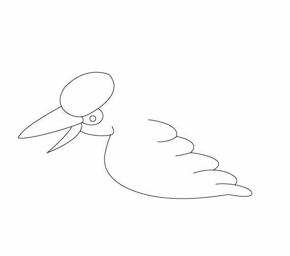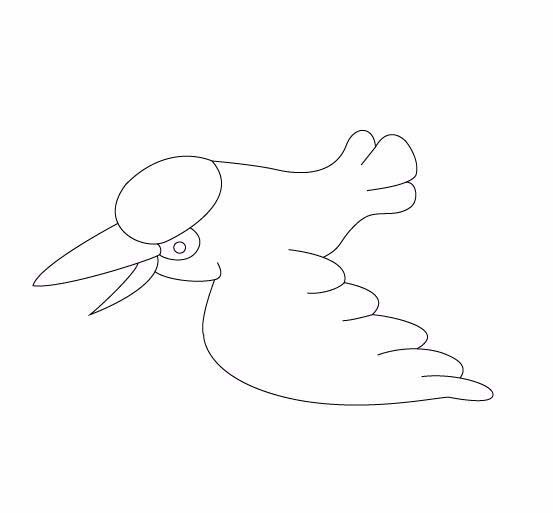 6、在头部的基础上画出翠鸟的一只展开的翅膀,如图所示: