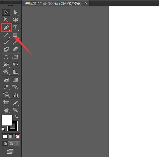 1、我们打开AI这款软件,进入到AI的操作界面,然后在打开的界面内找到钢笔工具,如图所示: