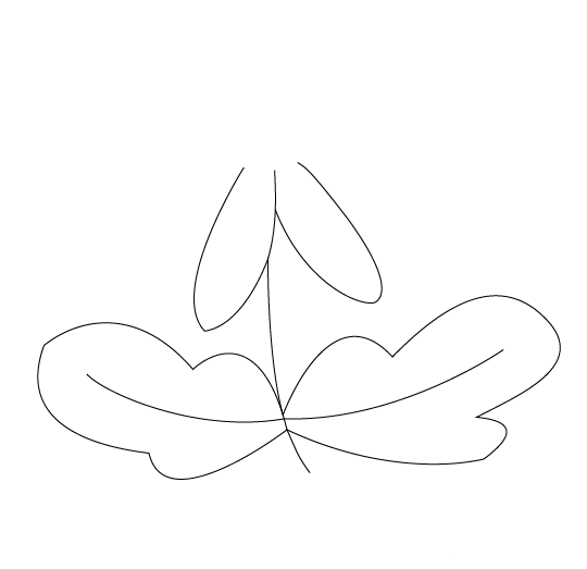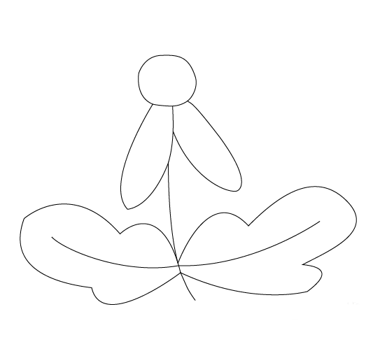 4、在花径上画出菊花的两片花瓣,如图所示:
