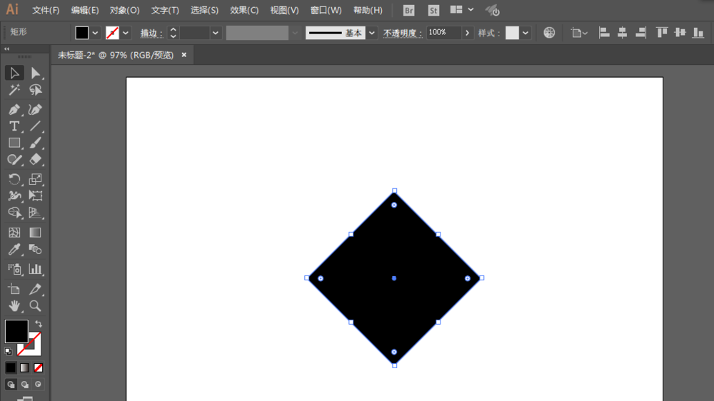 2、矩形工具绘制一个正方形,然后旋转45度,用直接选择工具调整锚点位置,并且改为平滑。