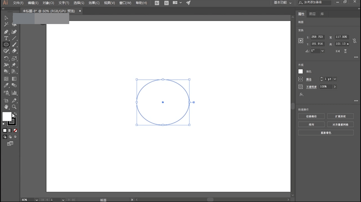 2、接着绘制图形,点击左边工具栏中的圆形工具,绘制出一个圆。