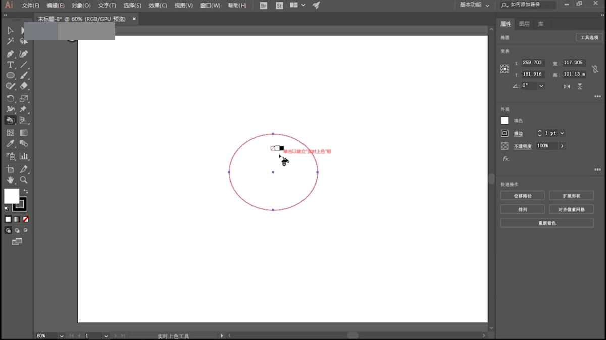 3、点击工具栏中的实时上色工具选项,创建一个“实时上色”组。