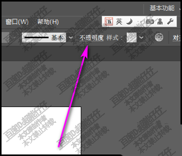 2、首先,要把这两个圆都选中。然后,在上方的菜单栏中点:不透明度