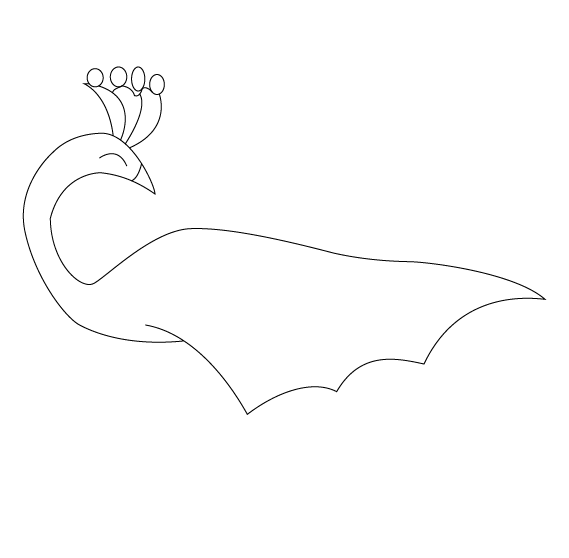 5、在头部的基础上画出孔雀的脖子及身体和尾巴,如图所示:
