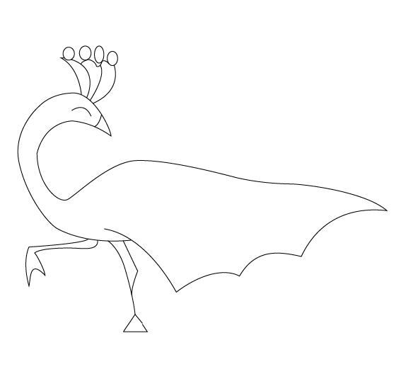 6、再在身体下面画出孔雀的两条腿及脚部,如图所示: