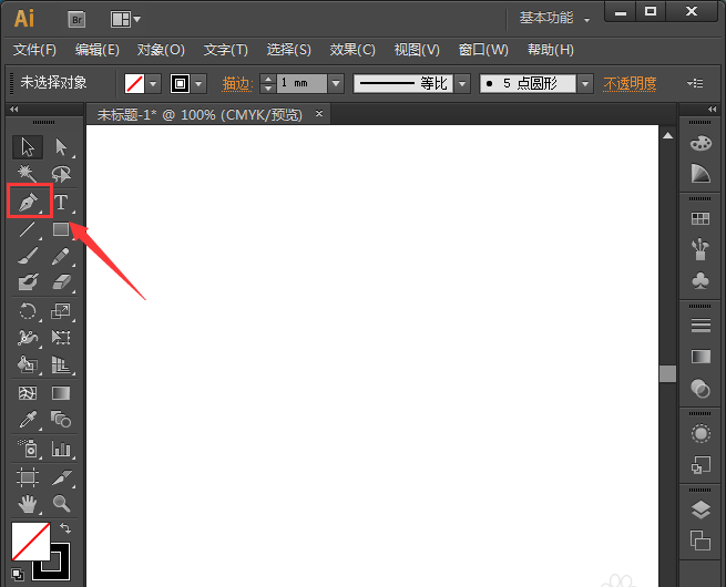1、我们在桌面上双击AI的快捷图标,将AI这款软件打开,再打开的界面内找到钢笔工具,如图所示: