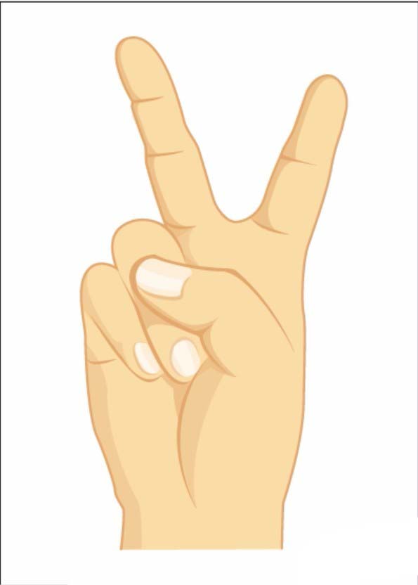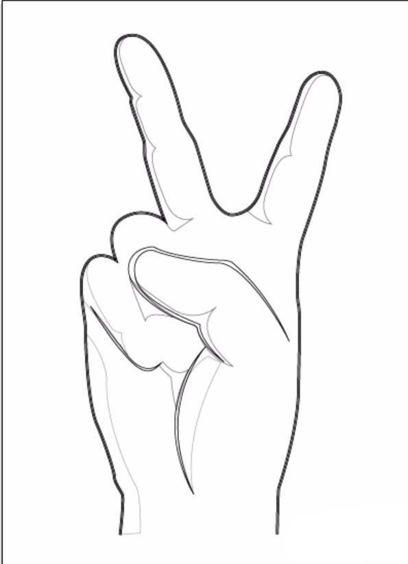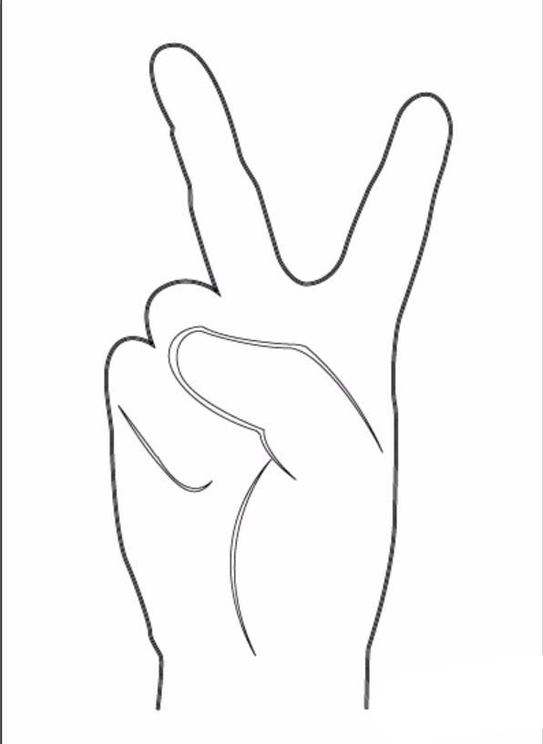 1、使用钢笔工具画出v手势的路径,五个手指的轮廓一一呈现在插画当中。
